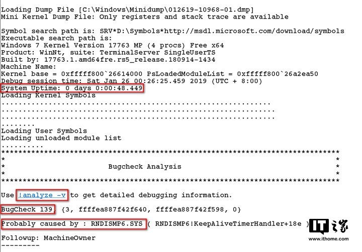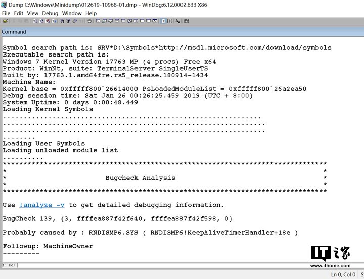Probably caused by:可能诱因。并不是每个dmp文件分析出的此项都是有意义的,但这次运气非常好,此项数据值是名为RNDISMP6.SYS的驱动文件。也就是说很有可能是由于这个驱动出现问题导致蓝屏死机。经过查询得知,本次蓝屏正是手机通过RNDIS设备共享网络时驱动出错引起的,更新驱动并进行一些兼容性更改后得以解决。