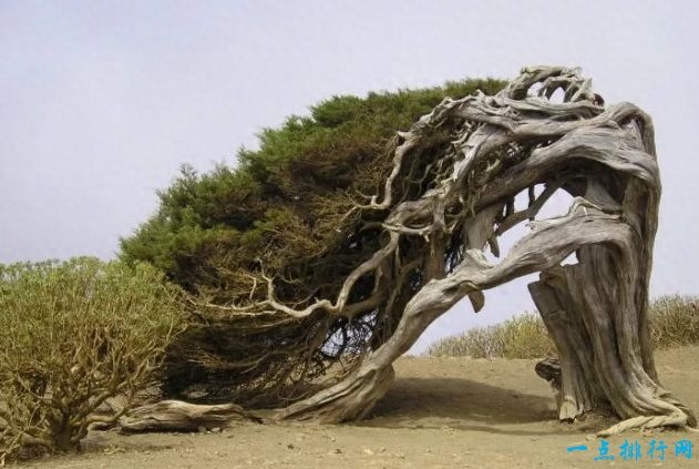 一个被风吹散的头发,这种树的生长方向是由风决定的,跟向日葵一样,它跟着风向跑。
