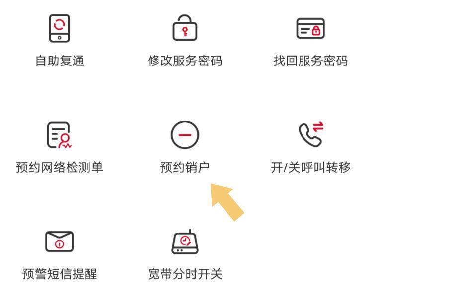 点击办理选项,右侧界面会自动切换,找到预约销户选项。如下图: