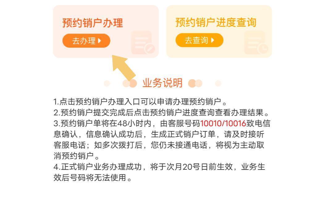 然后根据提示填写即可在网上办理销户了(涉及到个人信息,故不做演示),需要注意的是,提交预约注销申请之后,一般会在48小时内审核完成,会有10010或10016客服电话打给自己,注意接听,就可以进行注销啦。