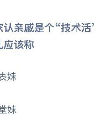 蚂蚁庄园非常好玩,养鸡的同时还能做慈善,爸爸的姐姐妹妹叫什么称呼,最近的知识问答还可以免费叫啥送饲料,爸爸的姐姐,爸爸的姐姐叫姑妈还是姑姑,爸爸的姐姐的儿子叫什么?,爸爸的姐姐的孩子。