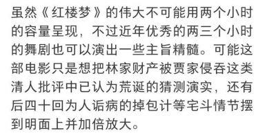 关于人物设定和逻辑方面的问题,更是让观众们无法接受。《红楼梦》是一部有着庞大故事情节的作品,各种线索盘根错杂,需要用一本书的篇幅才能详细阐述。电影想要在短短的两个小时内将整个故事讲述完毕,无疑是对原著的一种极大挑战。尽管编剧试图通过一条主线来串联起整部电影,但这种做法却使得原本复杂的剧情变得更加复杂,让人难以理解。