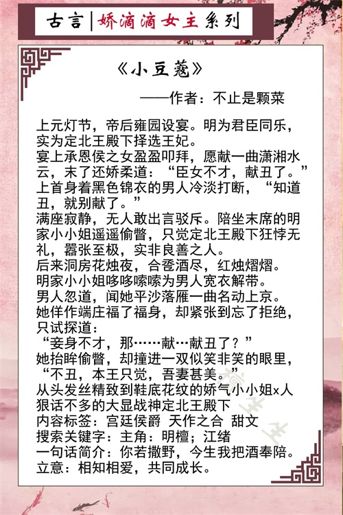 六本娇滴滴女主古言!《小豆蔻》《娇靥》剧情又甜又炸,强推