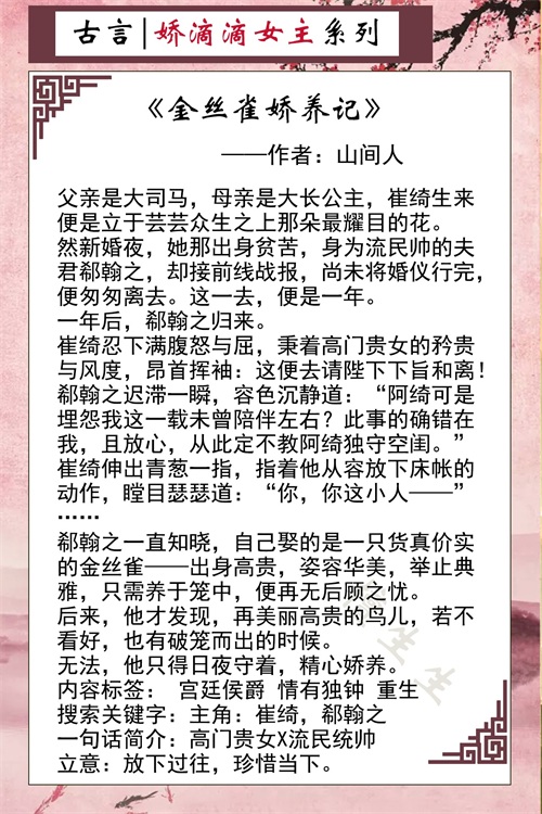 今天推五本娇滴滴女主古言,献给喜欢阅读的书友们!