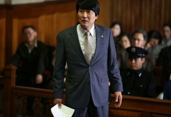 在《辩护人》筹划初期,正值李明博当政,一部映射全斗焕前总统暗杀事件的曾因题材敏感一度停拍。《辩护人》战战兢兢的制作方因为宋康昊的加盟看到了一线生机。而当时刚刚经历过和两部商业电影票房败走的宋康昊,也正急需一个为自己正名的好角色。