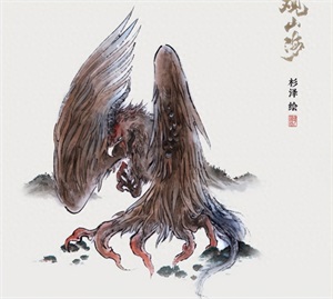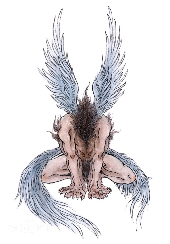 样子看着像雕,张开翅膀有一丈之余,头上长着鹿角,叫声如同婴儿的啼物,用来吸引猎物的靠近。他们以吃人为生,从来不吐骨头。