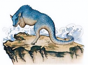 他生活在堤山下的堤水中,是龙族和灵龟的后裔,长着龙头龙身,尾巴像蛇。