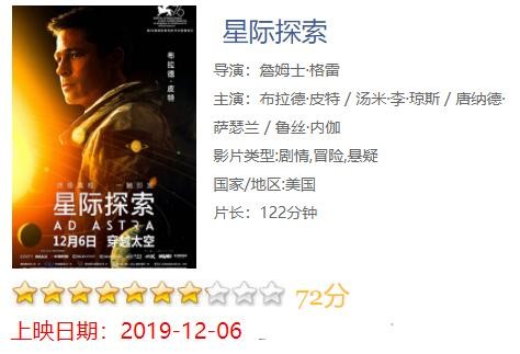 观影价值:布拉德皮特作为IP,好莱坞的科幻大片永远值得一看。