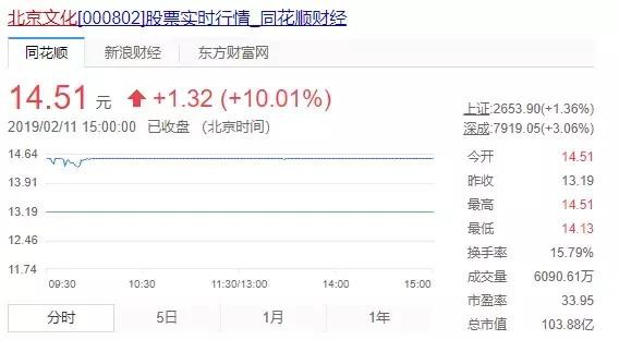 其中最大的赢家是北京文化。2月11日一开盘北京文化即涨停,后开板,随后又封上涨停。