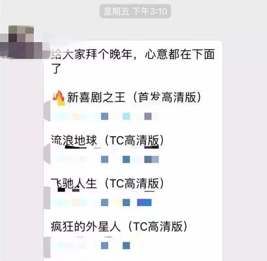 票价上涨的同时,影片遭到盗版的消息也备受关注。有人在朋友圈和微博上以“一元一部三元打包”的价格叫卖,也有人在各个微信QQ群里携资源给群友们“拜年”。