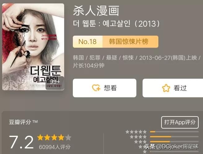 《杀人漫画》2013.06.27上映,影片讲述了韩国发生的连环死亡事件,与人气漫画家作品上画的死亡方式一模一样,但随着警方调查的深入,凶手是谁却愈发的难以辨识。