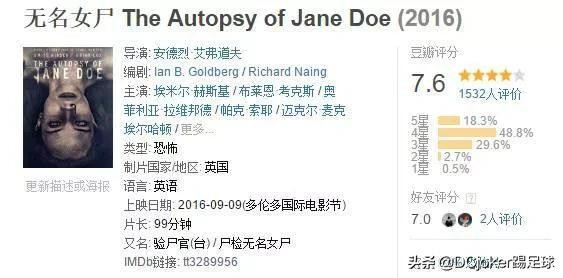 《无名女尸》2016.12.21上映,堪称2016现象级的恐怖片,影片主角是一具全裸女尸,从女尸来到验尸房后,就一直怪事连发。