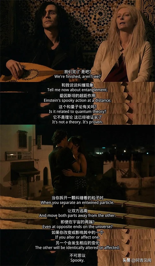 突然一首中东美人美妙的歌喉又唤起了他们对这个世界的美好回忆,两人诉说着过去,甚至聊起了量子理论,于是谈着谈着两人又拾起了活下去的信心。