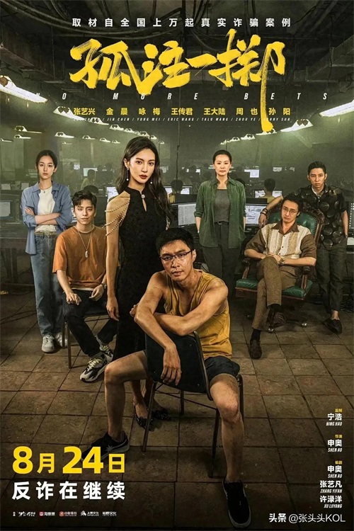 第十名,《孤注一掷》,豆瓣评分6.8分。内地票房38.2178 亿元,导演是申奥。主演有张艺兴、金晨、咏梅、王传君、王大陆、周也等。影片聚焦网络诈骗,展现了诈骗背后的黑暗与残酷,以及人们与诈骗分子斗智斗勇的过程。这部电影结合当下来说,可能不算是一部好的电影。但一定是一部好的反诈宣传片,很有现实警醒意义。