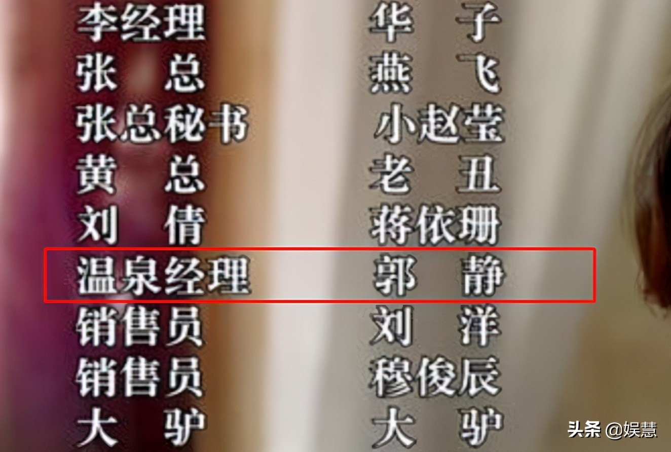 在偶然看片尾序幕时,演员表一栏中有一个名字引起了笔者的注意,她就是在剧中扮演温泉经理的演员郭静。