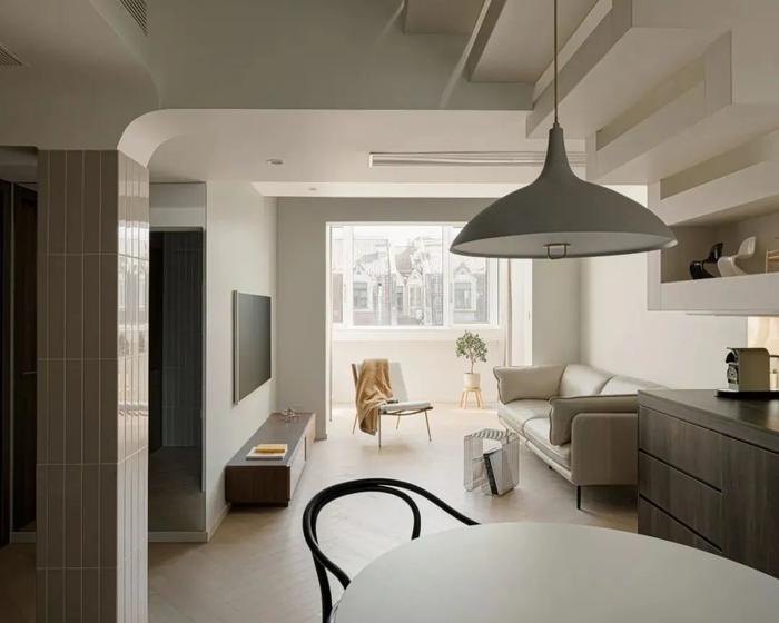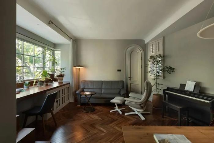 怀着对老房子的依恋,设计师尽量保留住宅原貌,不用硬隔断切得太碎,使其兼有旧时光的韵味和现代的舒适。