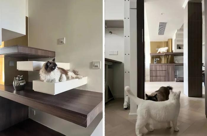 部分柜体没有做到顶,留出“通道”,方便猫咪活动。
