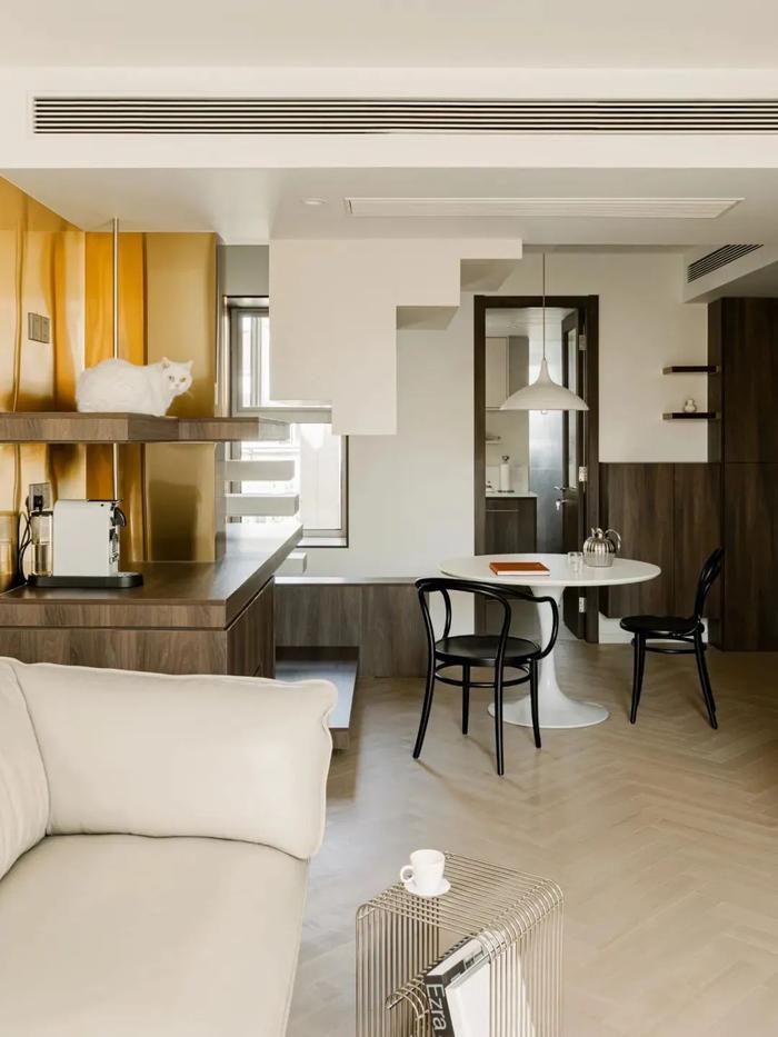 陈茜茜和傅翀的解决办法是:一区多用,通过“叠合”,让小户型拥有大平层的空间感。