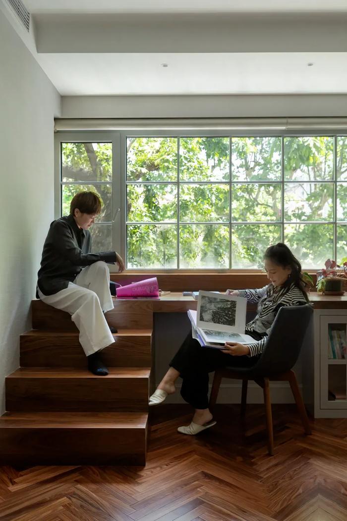 “每次去她家,我都坐在窗台上,爱看城市的人群来往、骑自行车,年轻人谈恋爱或阿姨们买菜,很有生活气息。我还特别喜欢把鞋子袜子脱了,实木地板能激发人的天然触觉系统,让人状态松弛。”