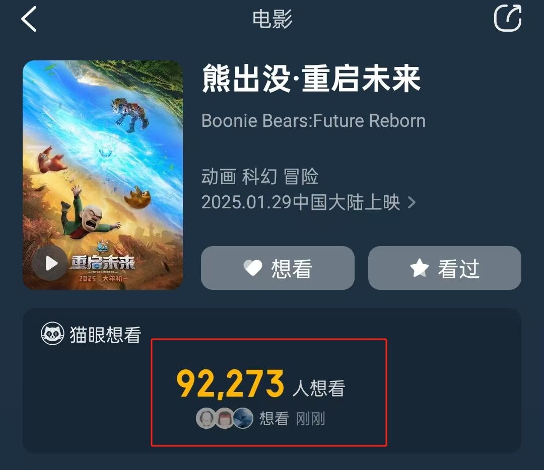 导演这个思路没问题,但是这部电影的期待值不是很高,目前只有9.2万人想看,在四部电影中排名倒数第一。