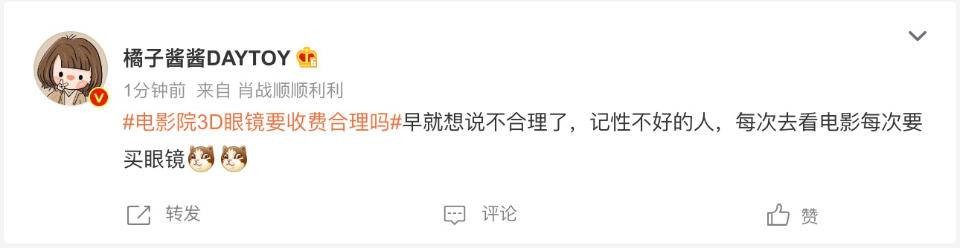 热闻|不少电影院3D眼镜要单独收费,网友:吃饭要搬桌子吗?