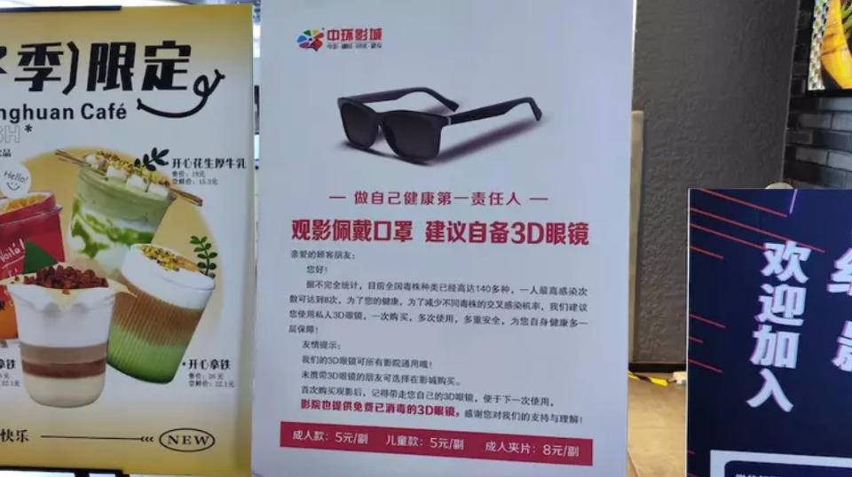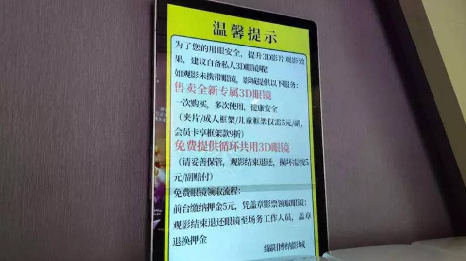 也有一些影院表示,眼镜算是近身个人物品,观众自行购买,是出于健康卫生考虑。