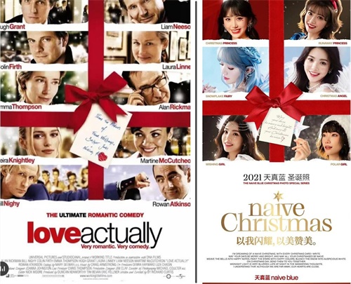 (左图:美国电影《真爱至上》海报;右图:天真蓝圣诞照宣传海报)