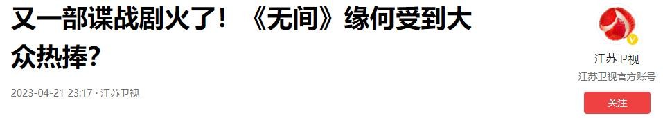 《江苏卫视》在2023年4月21日发布关于“又一部谍战剧火了!"《无间》缘何受到大