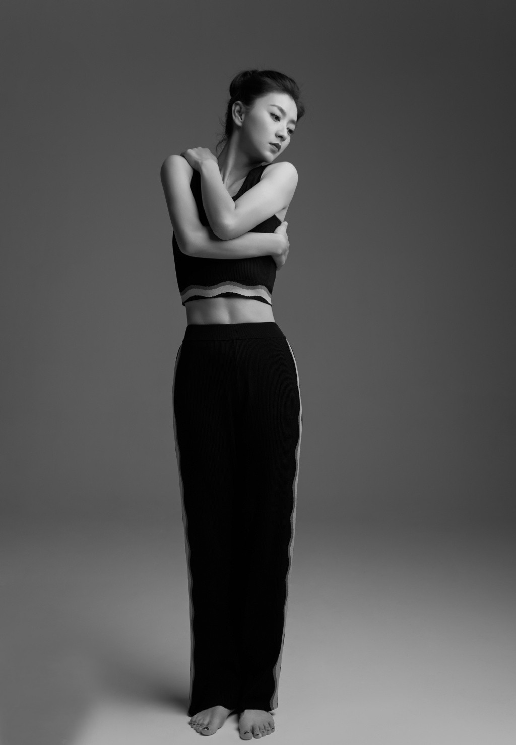 斓曦内搭黑色打底衫,外面穿了件黄色西装,与长裤搭配,带来活力抢眼视觉感受,更是将其帅气干练的职业风展示,脚踩细细尖头皮鞋,更是打造出御姐之风。