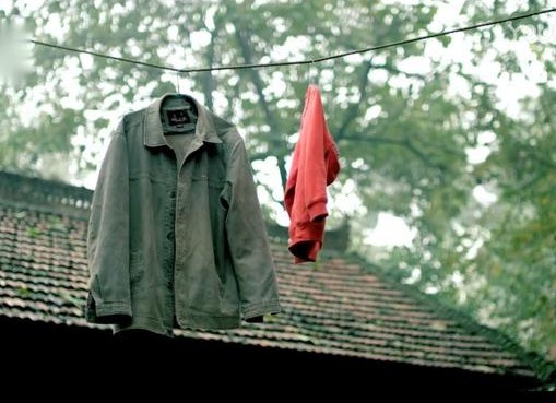 细节二:衣服。在院子里的晾衣绳子上,之前曾挂上了两个人的衣服,最后又只剩下孤零零老杨头一个人的衣服。这里不仅有衣服的变换对比,还有作为背景的天气对比。前者天气晴朗,画面明亮;后者天气阴沉,画面黑暗。这个小细节反映了爷爷老杨头在孙子布鲁克斯走后,一个人孤独哀伤的心情。