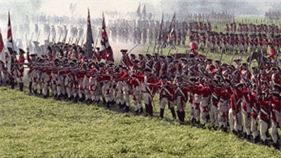 17-19世纪打仗基本是“线列战术”,即参战双方各自站成整齐的一排,同时向对方挺进,以肉身来挡子弹,打倒一排,后排再补上,最后看哪一方幸存的士兵更多当然就是获胜的一方。