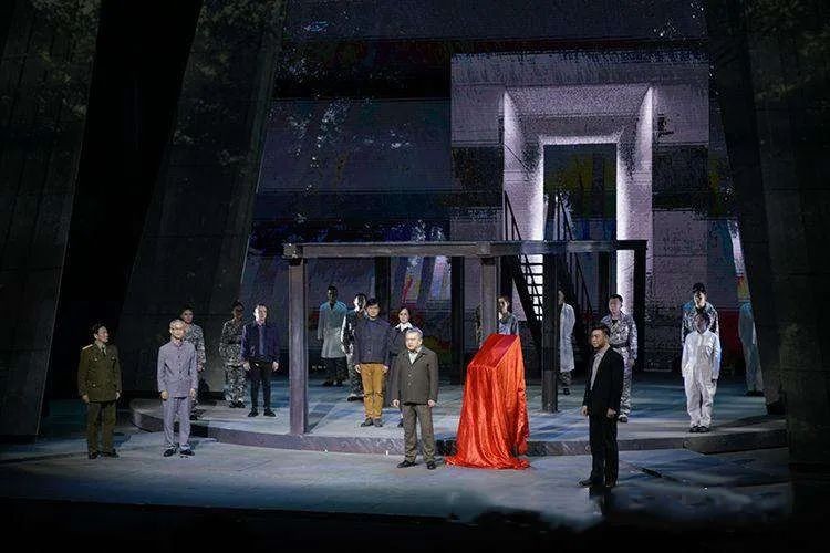 横向,则设计了生者和逝者交错的双重空间。这样的空间是为了充分抒发人物的感情,让人物在这个事件的发展过程当中,能够深刻地揭示他们的内心的情绪,反映他们内心的思想活动,更深刻地渲染人物的情绪,塑造出富于人性和生命力的人物形象。