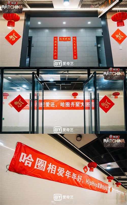 往年的总决赛的流程无非就是PK再PK,通过现场投票决定胜负,已经看了三年观众早已没了什么新鲜感,所以今年节目组借着说唱圈大和解的势头,决定举办一次“哈圈春晚”。从曝出的照片中看录制后台已经挂满红灯笼与横幅,上面都是一些“哈圈相爱年年好,HipHop发展步步高”、“哈人和平把爱还,哈圈齐聚大团圆”等土哈口号,连厕所都贴上了对联。的确有点年味的意思。