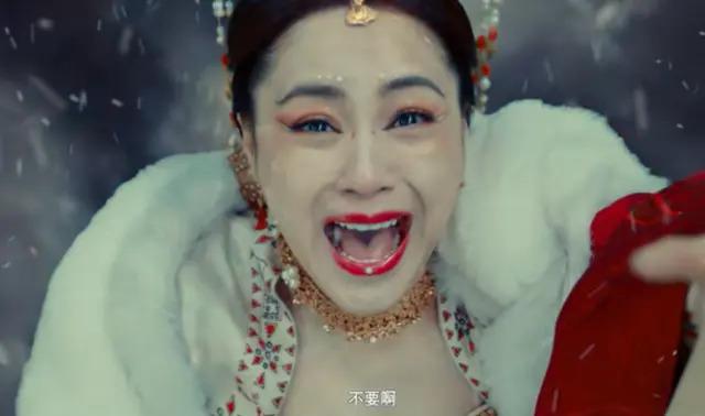 在电影中,她有好几套服装和造型,钗子满头,红色的戏服也很大气。