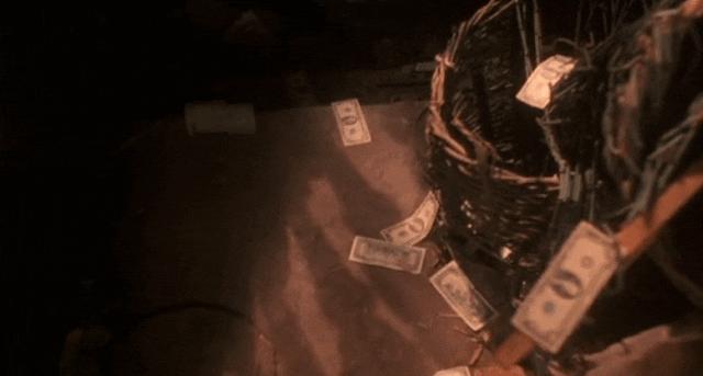 只见他不可思议地捡着纸币,朝着鬼屋走了进去。