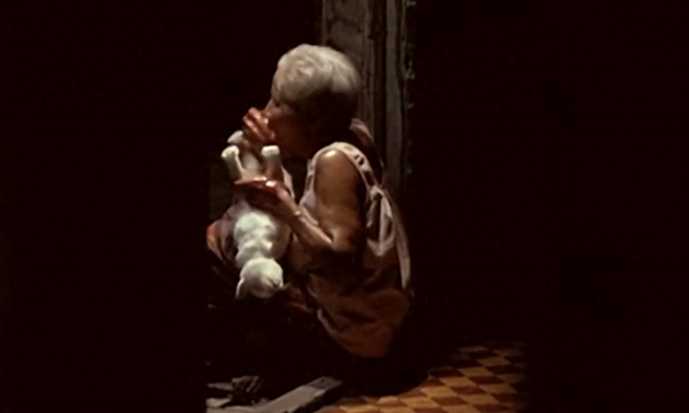 小金看见阿塔的阿婆生吃着死猫,而且还说“你们都不管我,我很饿!”