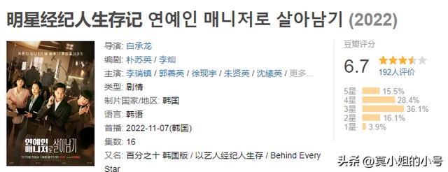 该剧又名《明星经纪人生存记》,该剧翻拍自法国人气电视剧《百分之十》,由李瑞镇、郭善英、徐现宇、朱贤英等人主演,豆瓣评分仅6.7分。