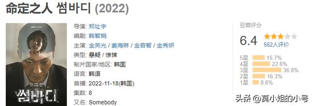 《命定之人》由金英光、姜海琳等人主演,一共八集,是一部悬疑惊悚的犯罪剧,豆瓣评分仅有6.4分。