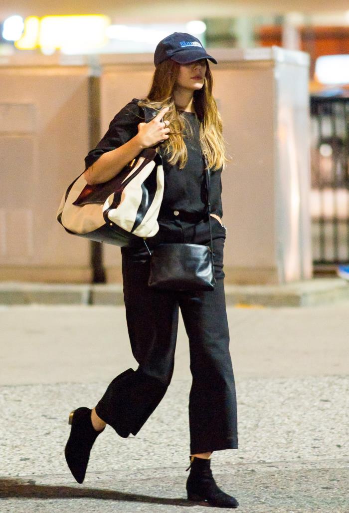 出行的绯红女巫,身上也是挂满了大包小包,戴着帽子,帽檐压得低低的,看起来很是低调。走在机场,不时低头玩着手机,十分轻松闲适。
