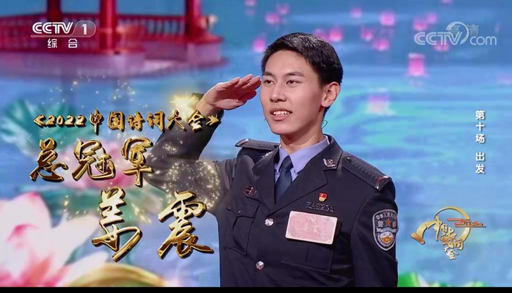 以藏蓝警服为战袍,心怀英雄梦,燃情诗词中,姜震和同为警察的父亲姜方程一同参赛,可谓“上阵父子兵”,从初中开始创作诗词到大学报考警察学院,21岁的姜震始终坚持着自己的热爱,此次夺得总冠军是对他最大的回报。姜震夺冠后,父亲激动落泪并寄语姜震:我希望你从今天开始,不忘你当初学习诗词的初心,把诗意人生走下去!