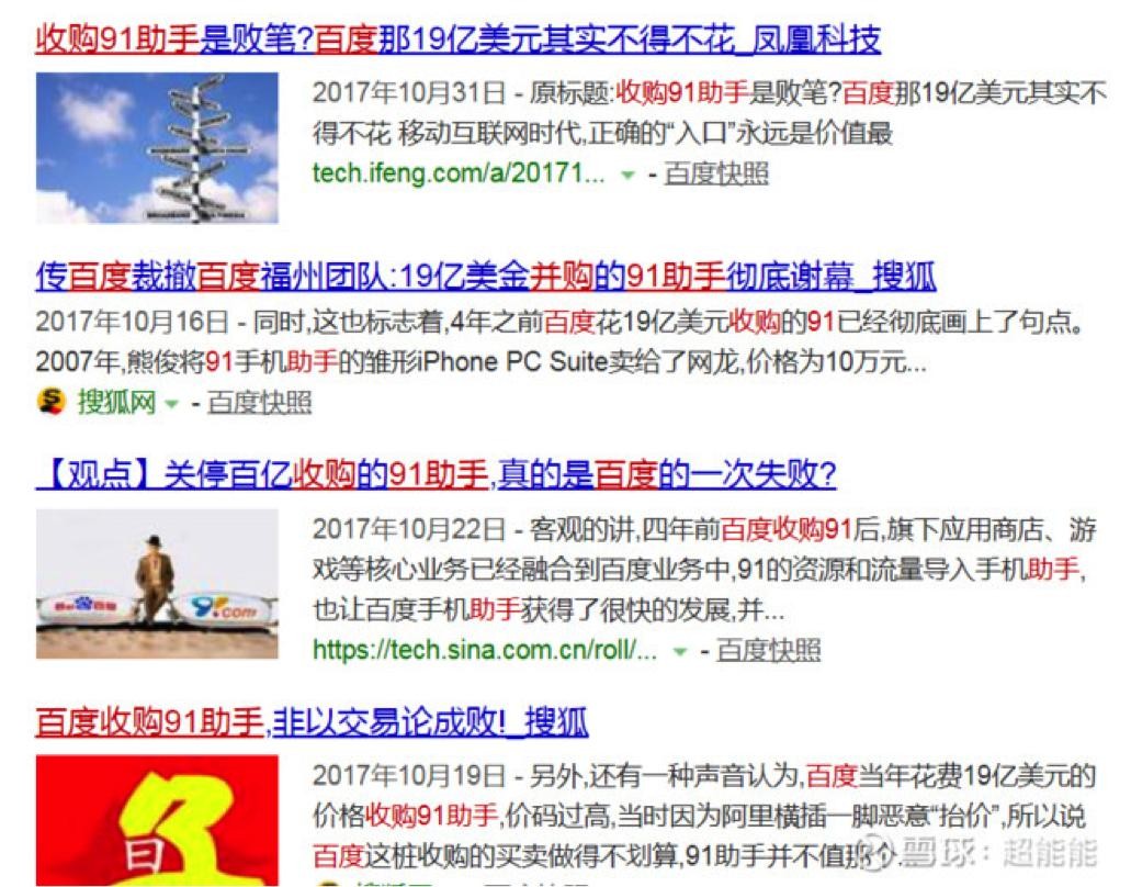 回看历史,网龙在互联网投资领域,运作能力还真挺厉害,像上面文章回顾中所说,不知道大家记不记得91助手,2013年,正是网龙以19亿美元的价格将91助手和无线业务卖给了百度。这个数字超过了当时整个网龙公司的市值,并创造了当时中国互联网收购金额记录,这些资金想必也为网龙后续布局转型在线教育提供了丰富的子弹。而对于百度和91助手来说,结局似乎有些苦涩。(感谢百度!阿里抬价功不可没!)