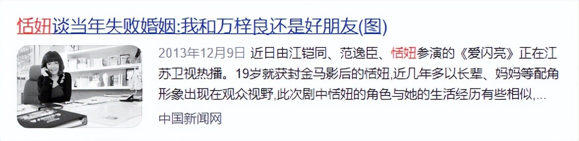 资料参考:2013-12-09中国新闻网——恬妞谈当年失败婚姻:我和万梓良还是好朋友(图)