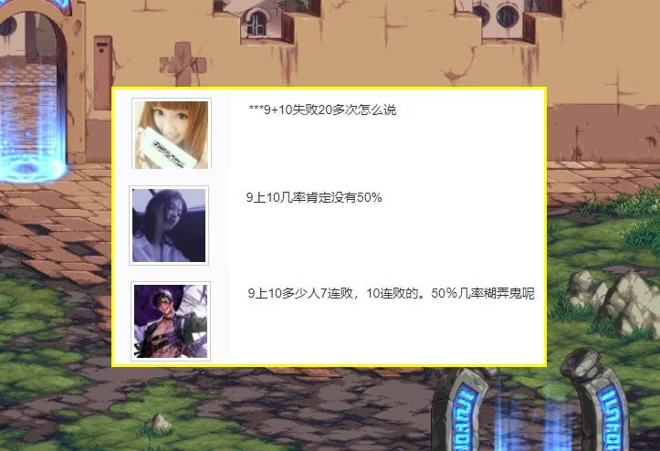 树大招风!在面对此增幅表曝光,一时间就引起了不少玩家的围观和吐槽,其中大部分玩家都是吐槽9上10高达50%几率的,其中有一部分玩家不少吐槽9上10多少多少连败,就是直言50%的几率纯属无稽之谈。总而言之,大家都不相信9上10的几率有这么高,甚至觉得10上11的几率都没有。那么问题来了,9上10的几率真的有50%的几率吗?