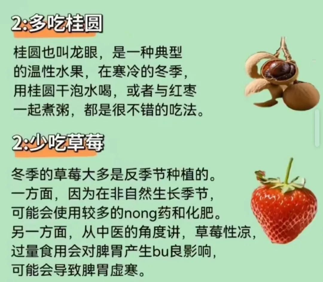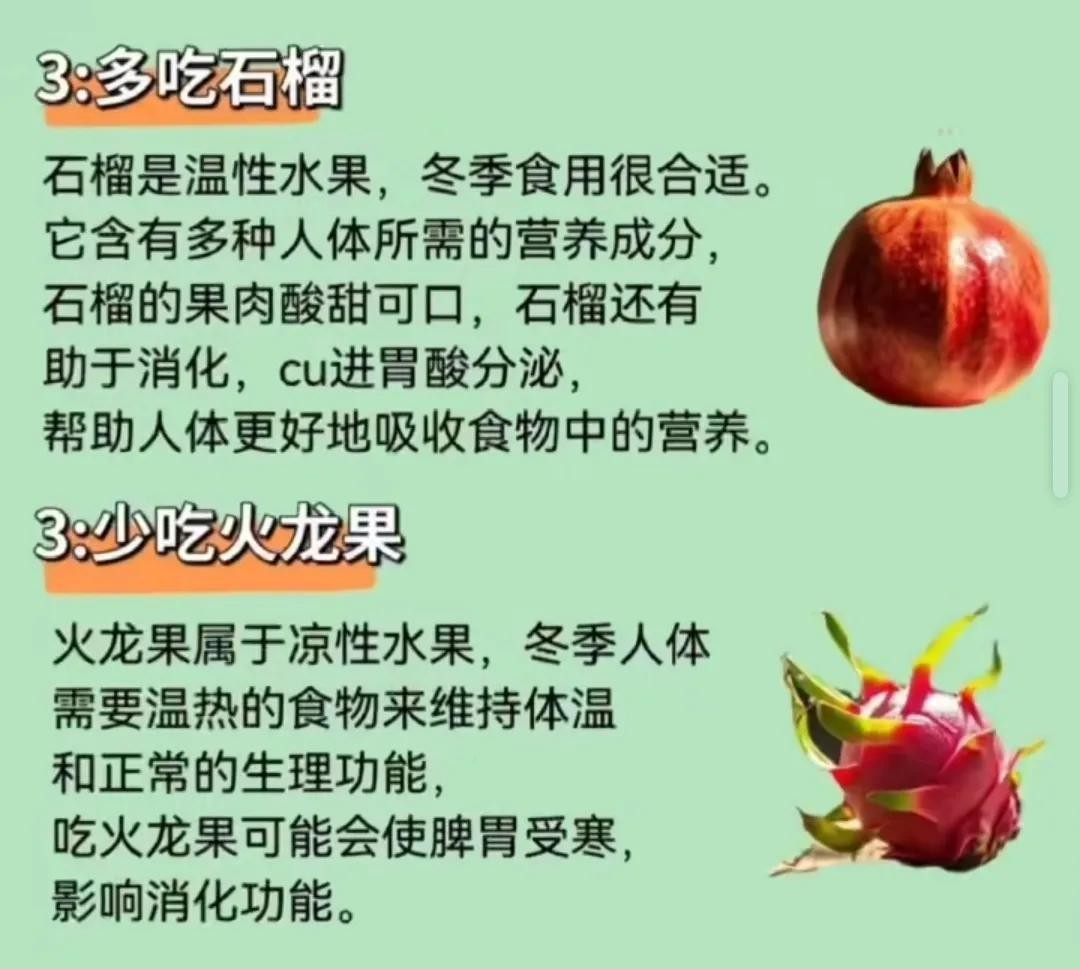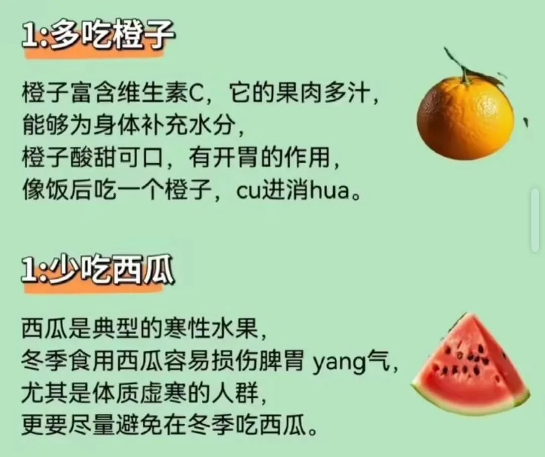 冬季吃水果,就像是一场与自然的对话。我们学会了倾听身体的声音,学会了在寒冷中寻找温暖的力量。橙子、桂圆、石榴等温性水果如同冬日的暖阳,温暖着我们的身心;而西瓜、草莓等寒性水果则如同冬日的寒风,需要我们谨慎对待。在这个季节里,让我们选择对的水果,让身体得到最好的滋养。愿每个人都能在冬季里找到属于自己的那份甜蜜和温暖!