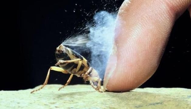 我们听到的响声,就是这样来的,而温度也是在这一步里通过化学反应产生的。捕食者面对这突如其来的响声,很可能会被“吓死”,在加上高温和毒液作用,一般的捕食者进不了射炮步甲的身。像青蛙、蟾蜍都会被伤到。