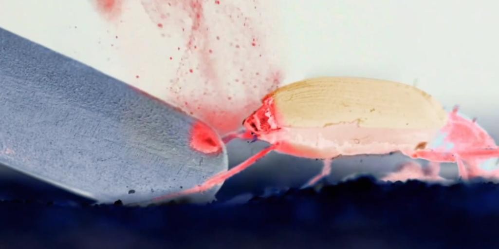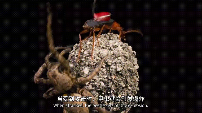 它发射的毒液,可以根据敌人的位置选择喷射的方向,起到精准打击的作用。科学家曾做过实验,将收割蚁和射炮步甲关在同一个器皿里,当收割蚁进攻时,射炮步甲会发射防御炮弹。在近距离内,收割蚁直接被打倒,失去了进攻能力。