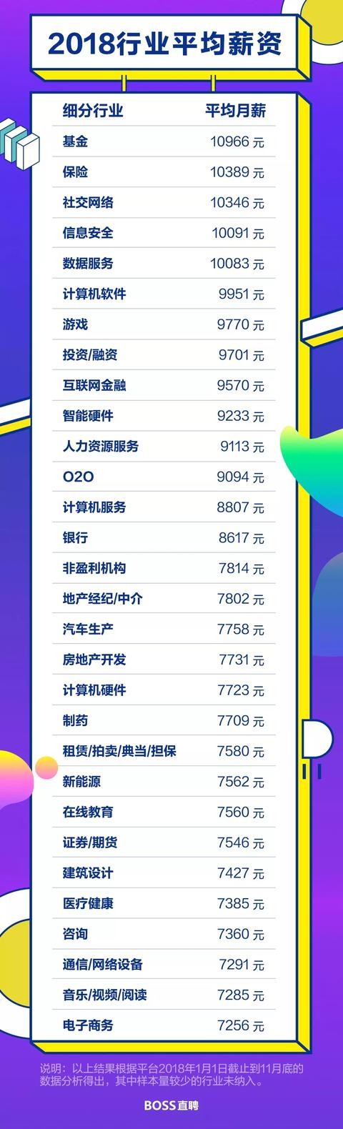 最后我们关注一下《2018行业平均薪资榜单》。