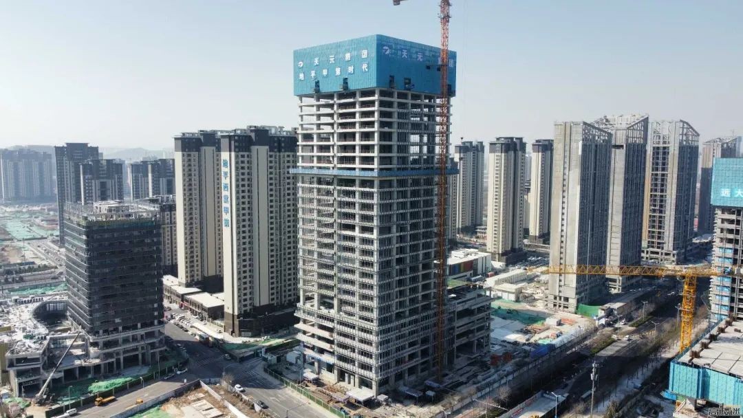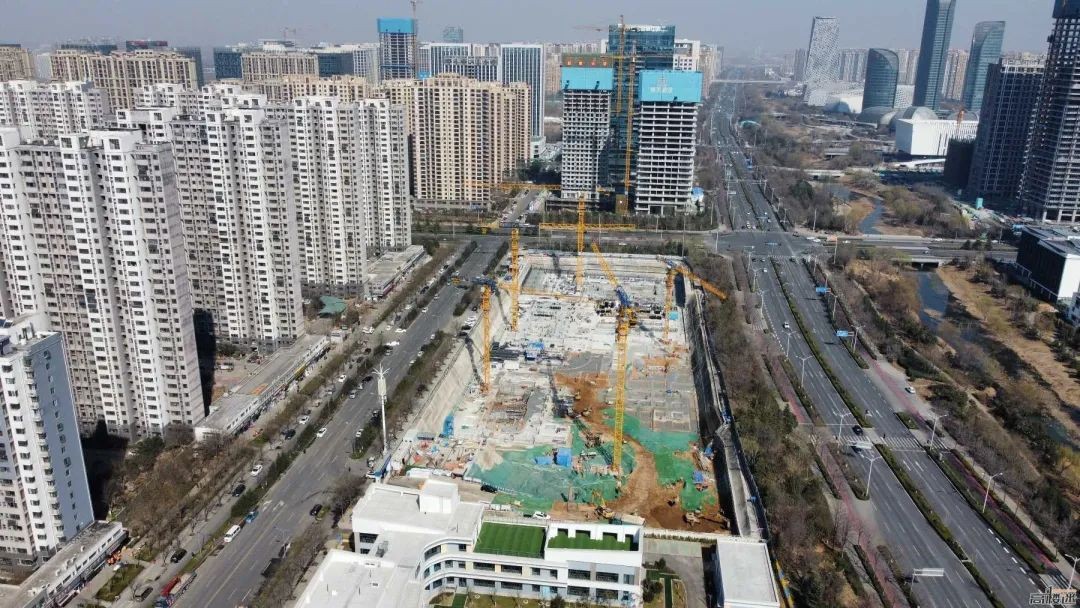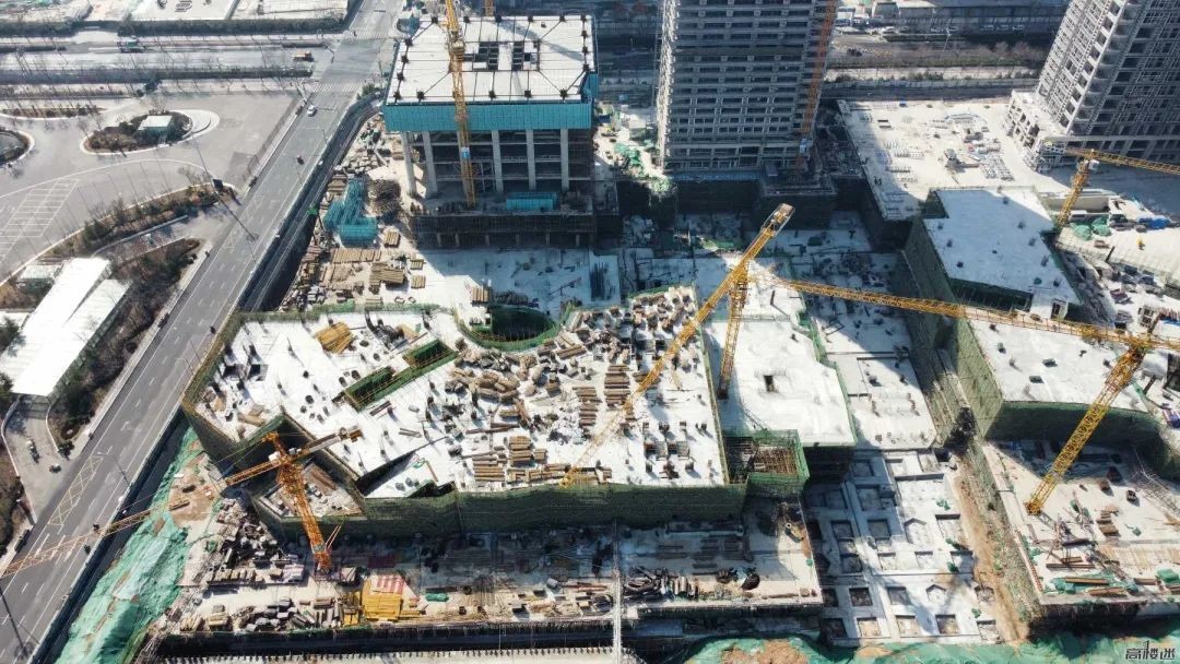 目前,该项目的南区正在进行主体结构的施工,部分高层建筑已经封顶,200米超高层、购物中心均出地面。