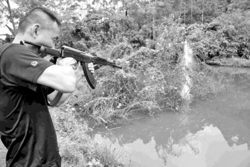 经研判,派出所、森林公安人员发现不具备抓捕条件,决定采取击毙方式。但此时,藏在草水中的鳄鱼仅露出巴掌大小的头部,留给杨伟超的机会仅有一次,如果不能一枪击中,鳄鱼将会潜入水中。