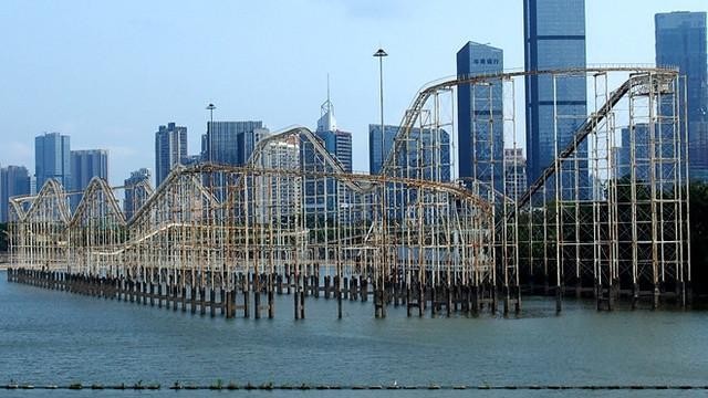 4月19日,路过香蜜湖,拍到深圳香蜜湖。曾经火爆的旅游景点已经不存在了,但在水中静静矗立的水上过山村,让人禁不住回想起当年香蜜湖水上乐园的热闹景象,这个水上过山车,是当年亚洲最大的水上过山车。旁边还的巨大的摩天轮,有海盗船,当年朋友来深圳,都会带他们来这里尖叫一番。香蜜湖水上乐园,中国娱乐城,风靡深圳,无人不知,当年在这里游玩,排队游客排到深圳大道上。